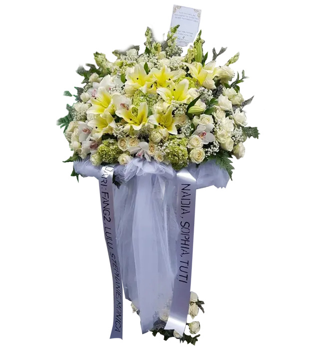 Setiap rangkaian bunga papan duka cita dipersiapkan dengan kehati-hatian, memastikan bahwa pesan penghormatan dan penghiburan terpancar dengan kuat melalui setiap detailnya.