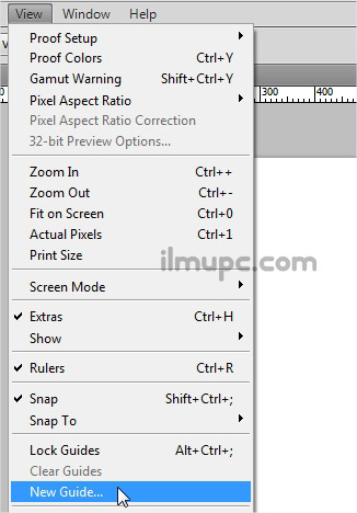 Langkah selanjutnya yaitu membuat garis bantu. Caranya pada menu bar klik View > New Guide.