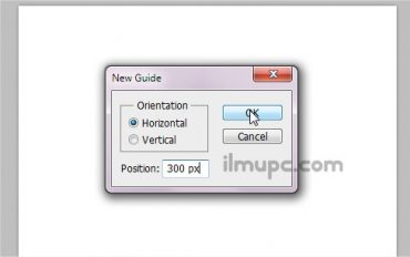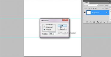 Selanjutnya buatlah garis bantu vertikal dengan cara sama dengan yang tadi, hanya saja klik pada pilihan vertikal. Buat dua position seperti tadi yaitu 300 Px dan 600 Px.