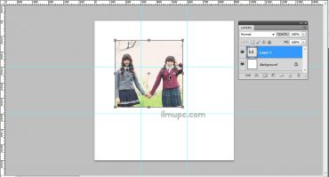 Langkah selanjutnya yaitu menyusun foto menjadi satu. Pertama-tama buka semua foto di photoshop, kemudian drag ke lembar kerja yang telah kamu buat. Kemudian atur ukurannya dengan cara tekan CTRL+T.