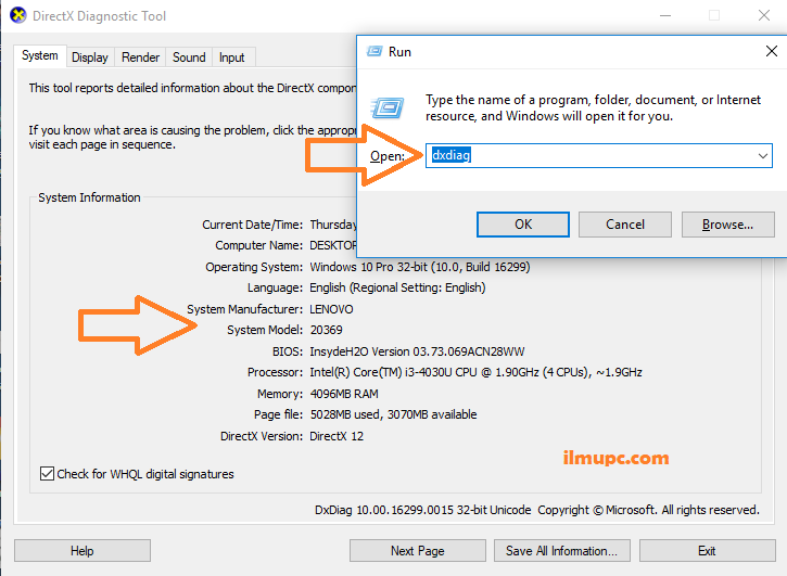 Apabila anda masih tidak mengerti tipe laptop apa yang dimiliki atau tidak tertera pada label tipe laptop di laptop anda. Mungkin anda dapat mencoba cara melihat tipe laptop melalui aplikasi bawaan windows yakni DirectX Diagnostic Tool yang dapat melakukan hal tersebut, caranya adalah sebagai berikut :