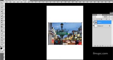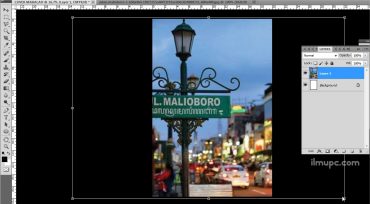 Langkah yang kedua adalah memasukan gambar dasar. Disini saya menggunakan foto Malioboro. Kemudian sesuaikan foto Malioboro dengan ukuran kertas, caranya tekan CTRL+T.